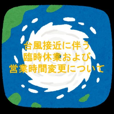 台風14号接近に伴う臨時休業および営業時間変更のお知らせ