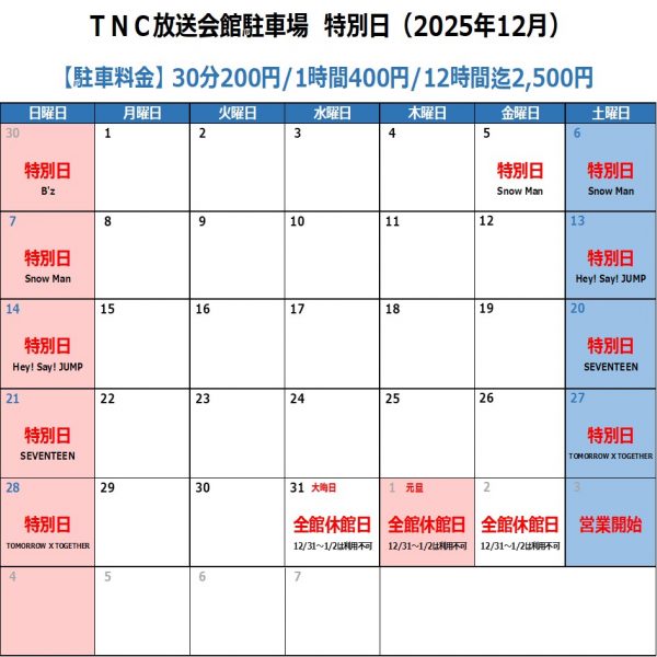 ※12/31は全館休館日のため駐車場も閉鎖いたします。