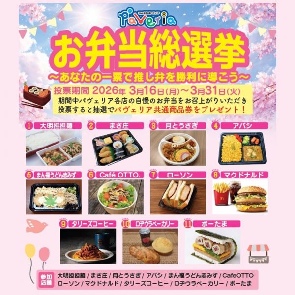 推し弁を食べて投票するとパヴェリア共通商品券が当たるチャンス!